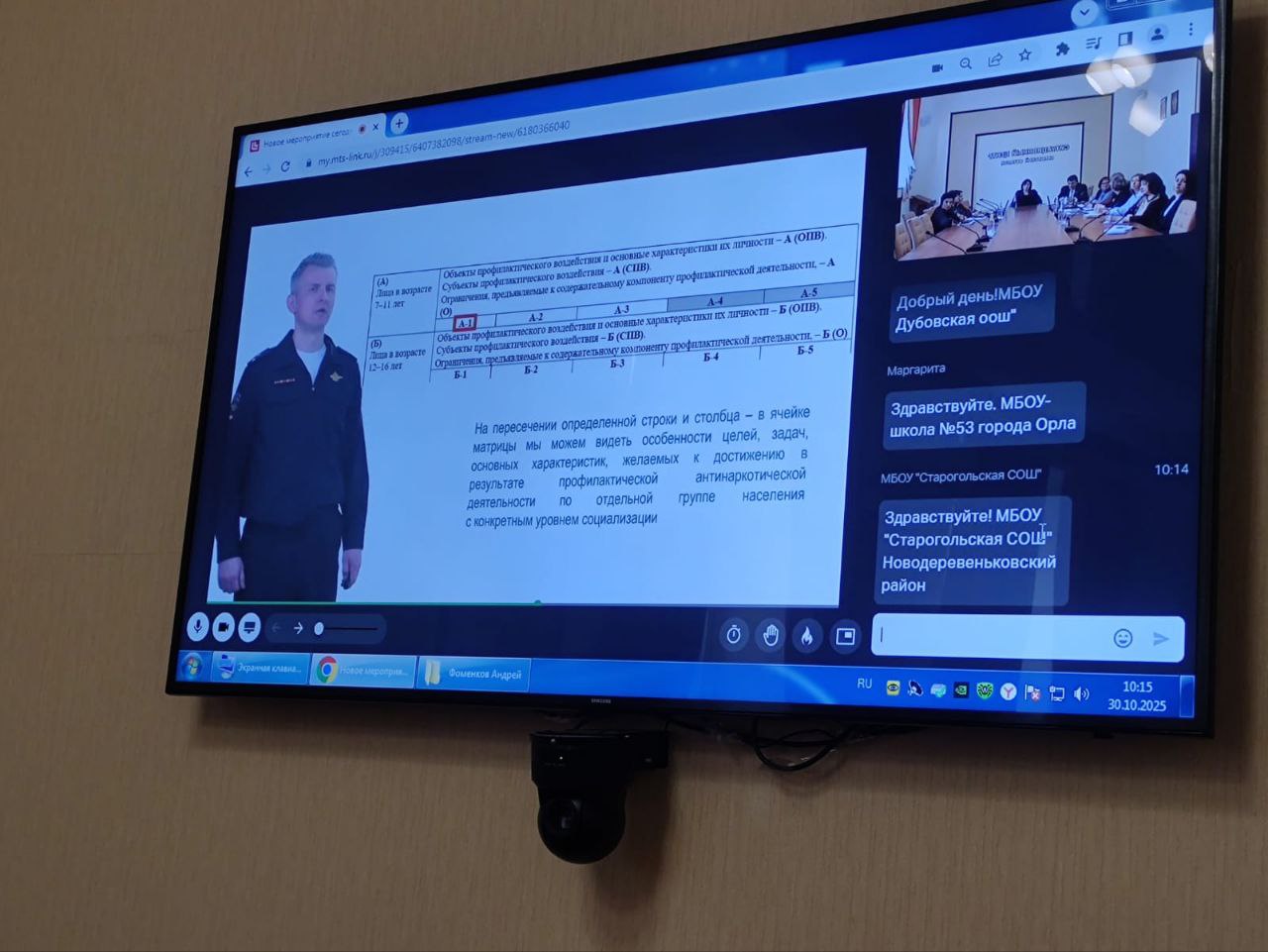 30 октября 2025 года Департаментом образования Орловской области проведено совещание по внедрению Межведомственного стандарта антинаркотической профилактической деятельности в Орловской области.